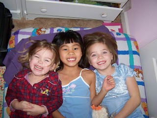 Saturday Ella traded in her toddler bed (actually it was on loan from Ms. Cindy) to a big girl bed. She was so excited, until it came time to turn out the light and she said "I don't like this big bed!", but she finally decided it was okay and has been fine since.